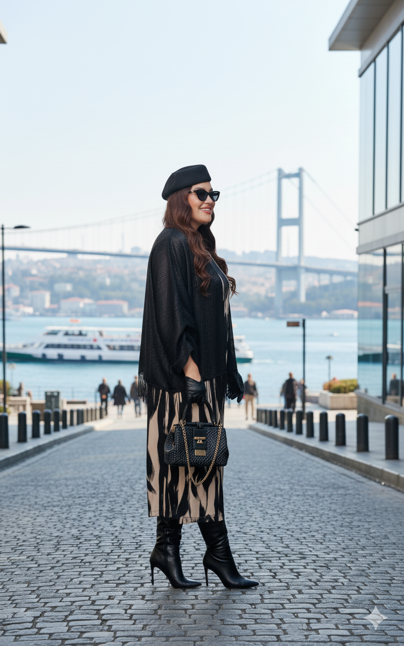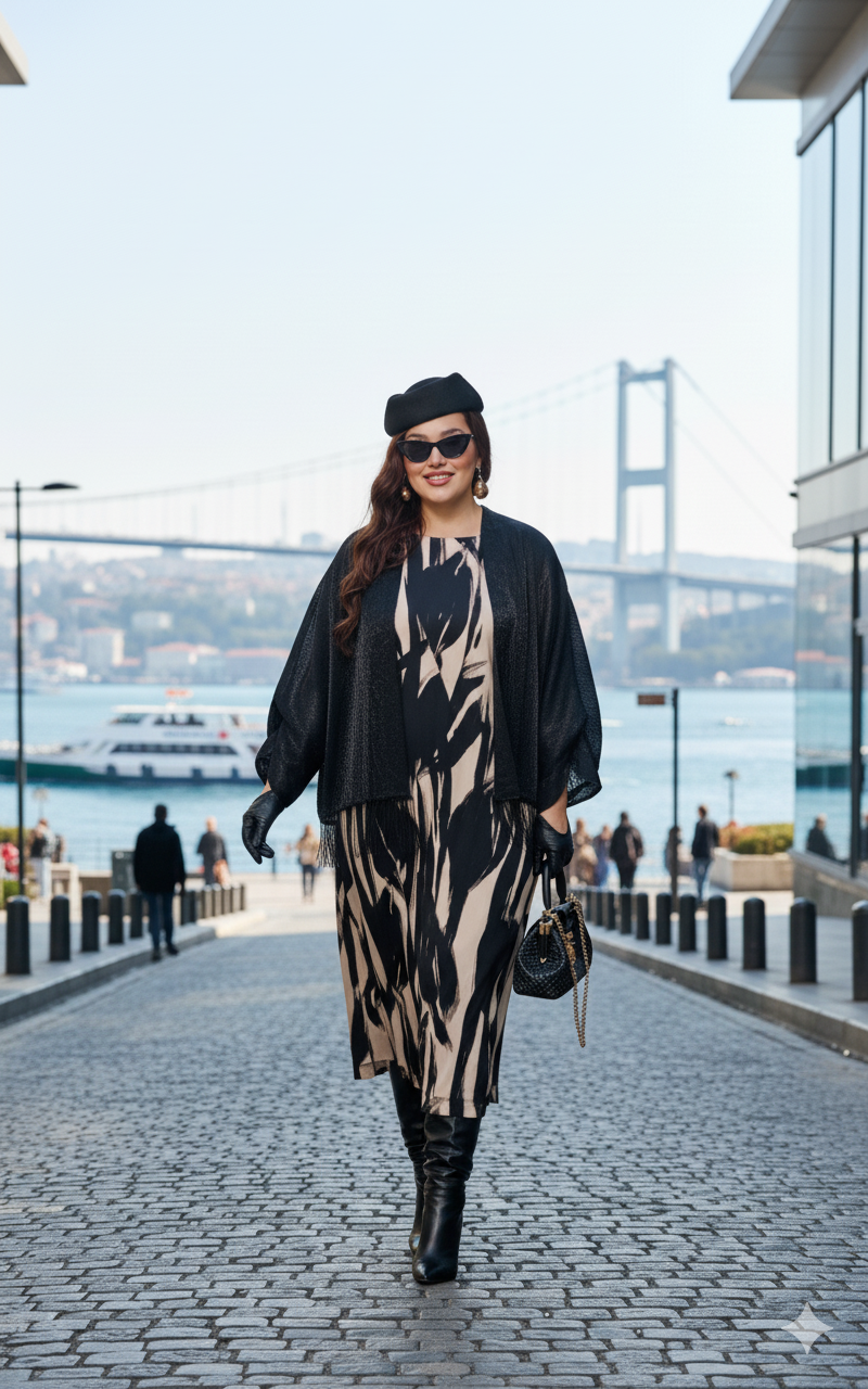 Состав: жакет 81% модал, 19% полиэстер, платье 100% вискоза, подкладка 100% полиэстер. Предлагаем вашему вниманию изысканный комплект состоящий из укороченного жакета и платье прямого силуэта. Сочетание разных фактур - крэш с отливом в жакете и шелковистое вискозное платье создают благородный ансамбль. Жакет прямой свободного силуэта с цельнокроеным рукавом, перед без застежки с широкой линии борта и не высокой цельнокроенной стойкой. Низ переда обработан декоративной тесьмой - бахрома. По рукаву декоративная складка низ рукава фигурной формы. Спинка по среднему шву со встречной складкой. Жакет выполнен на подкладке. Платье прямого силуэта со спущенным плечом и со шлицей сбоку. Горловина платья округлой формы по переду треугольный подрез на уровне груди. Платье выполнено на подкладке. Жакет длина по спинке 56 см (р 50-54), 57 см (р 56-60). Длина рукава жакета 61 см ( р 50-54), 62 см (р 56-60). Длина платья 125 см, длина рукава(плечо) 19 см (р 50-54), 40 см (р 56-60).
