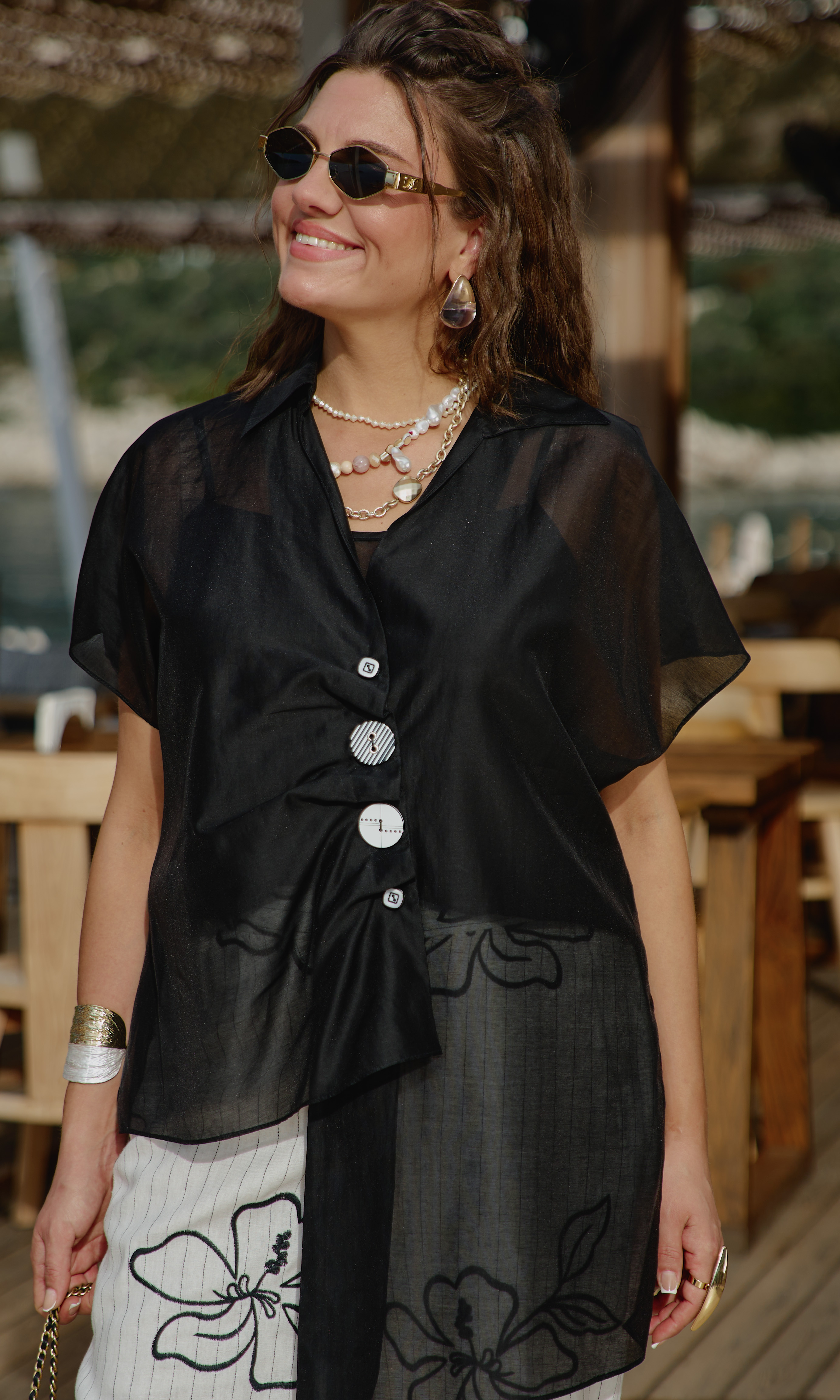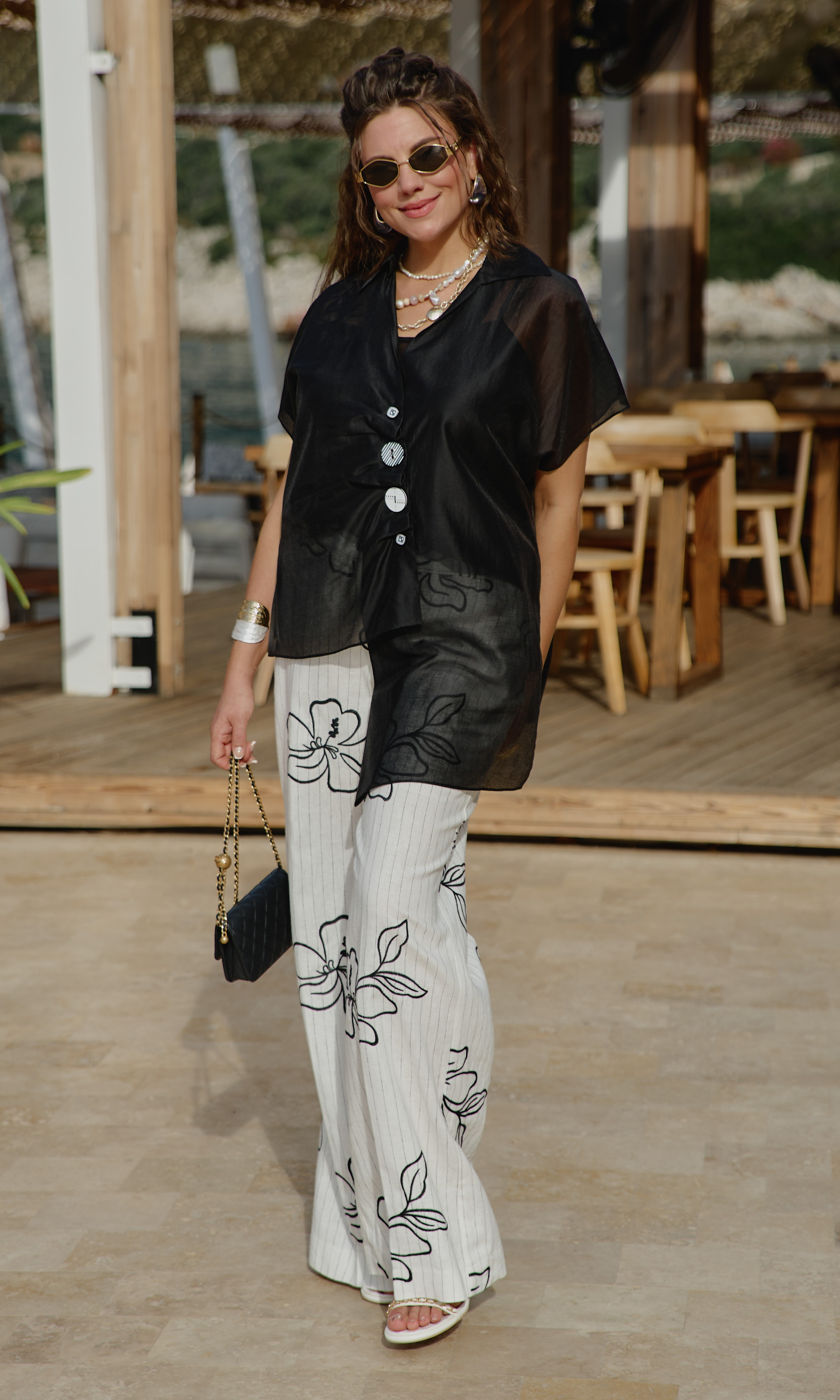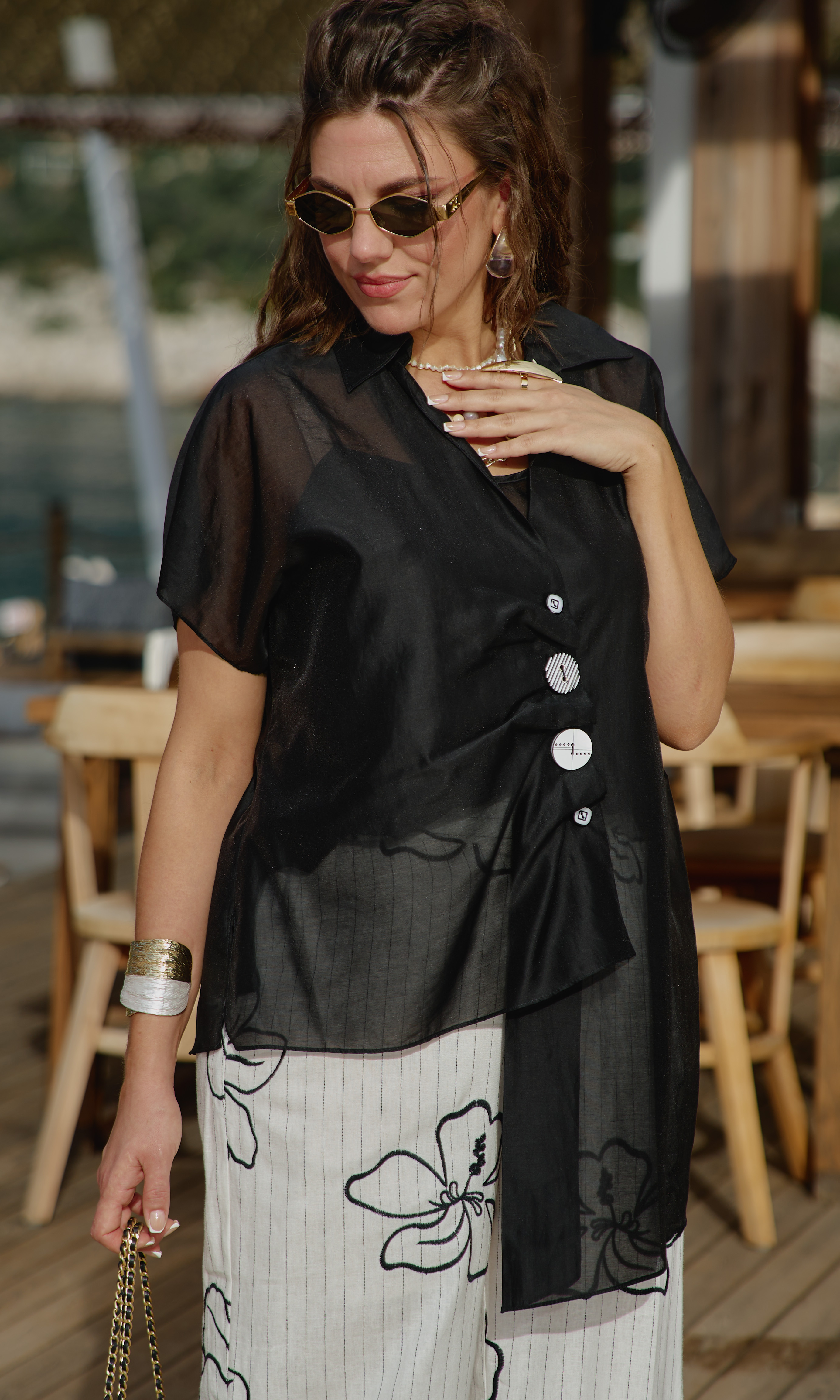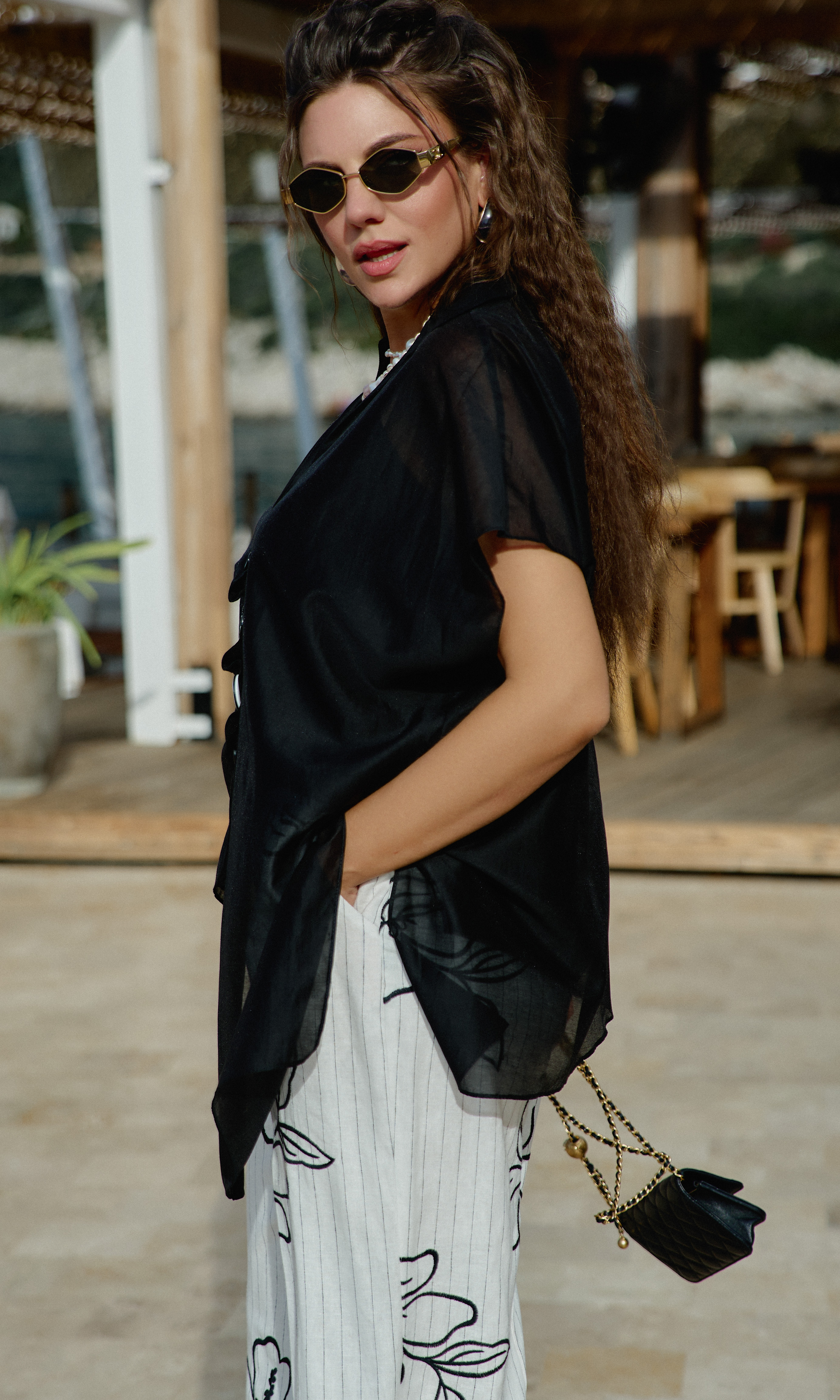 Состав: блузка 83% вискоза, 17% полиэстер, блуза 83% вискоза, 17% полиэстер, брюки 55% лён, 45% вискоза, подкладка 100% вискоза. Комплект женский трёх-предметный, состоящий из блузки, блузы и брюк. Блузка свободного силуэта с ассиметричной линией борта с заложенными складками, имитацией застёжки на декоративные пуговицы. Горловина в блузке с отложным воротником со стойкой. Рукав в блузке цельнокроеный. Спинка с отрезной кокеткой. Низ в блузке ассиметричный с разрезами в боковых швах. Блуза прямого силуэта на регулируемых бретелях со вставкой эластичной тесьмы-резинке по спинке. В боковых швах от низа разрезы. Брюки прямого силуэта, с притачным поясом со вставкой эластичной тесьмы-резинки в бочках, застёжкой на тесьму-молнию в гульфике и пуговицу в поясе. В боковых швах брюк прорезные карманы. Черные полоски плавно в сочетании с цветочными узорами добавляют в комплект легкость и игривость, превращая его в настоящее произведение искусства. Брюки на подкладке. Обращаем Ваше внимание, что фурнитура может незначительно отличаться от фото. Длина блузы спинки от плеча 69 см(р.52-56), 72 см (р.58-60). Длина переда правого 70 см (р.52-56), 73 см (р.58-62). Длина переда левого 84 см (р.52-56), 87 см (р.58-62). Блузка (топ) 43 см (р.52-56), 45 см (р.58-62). Длина брюки по боковому шву 108 см.
