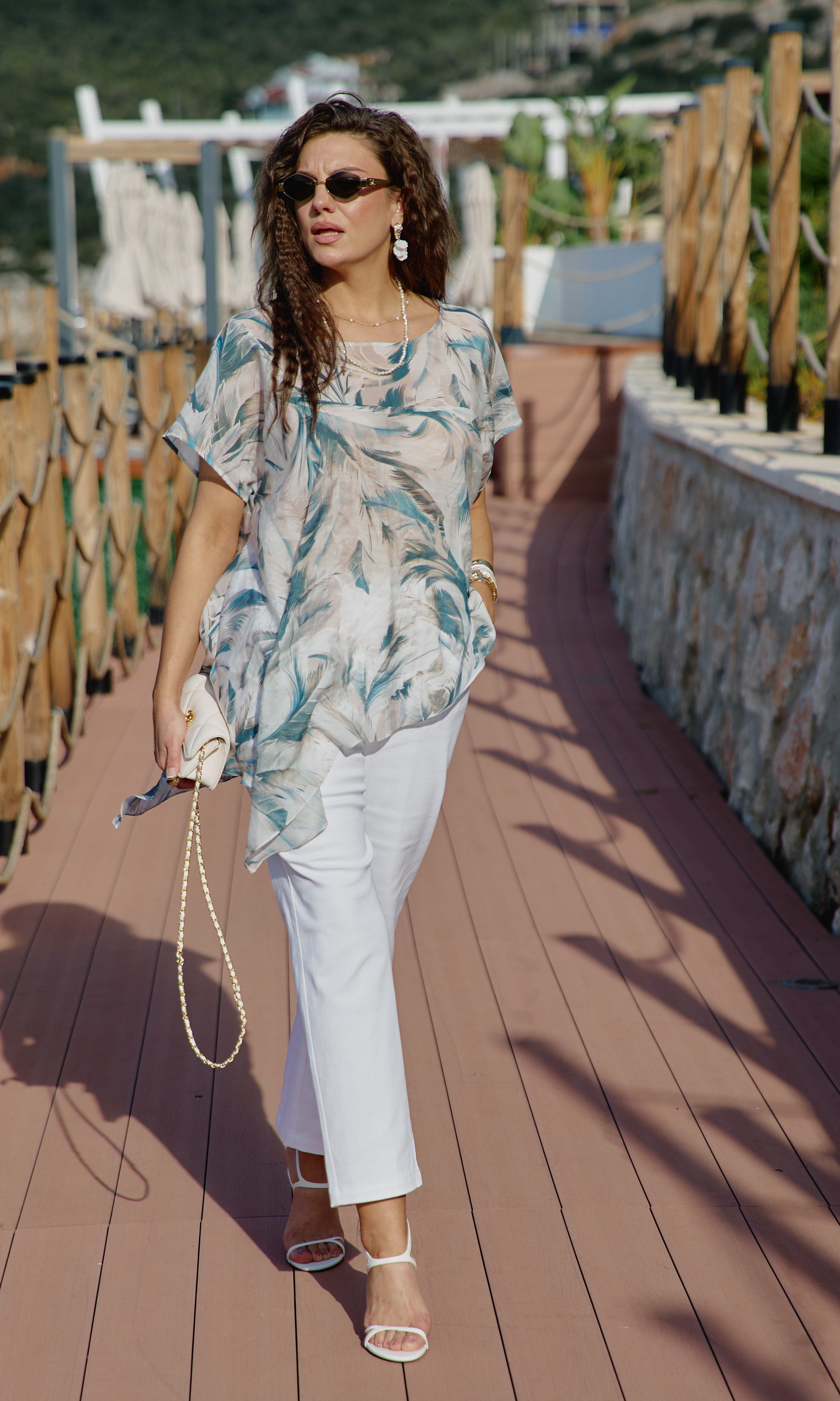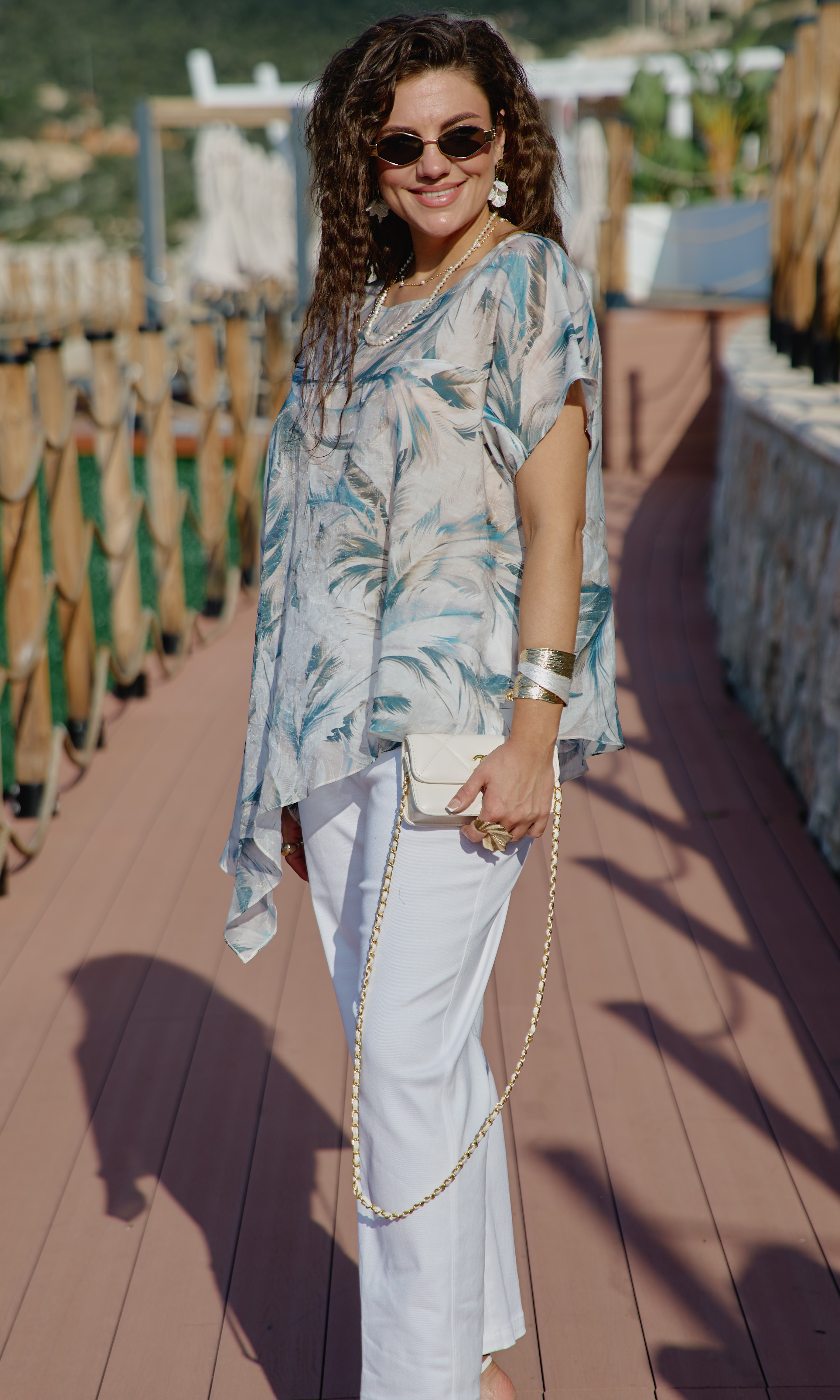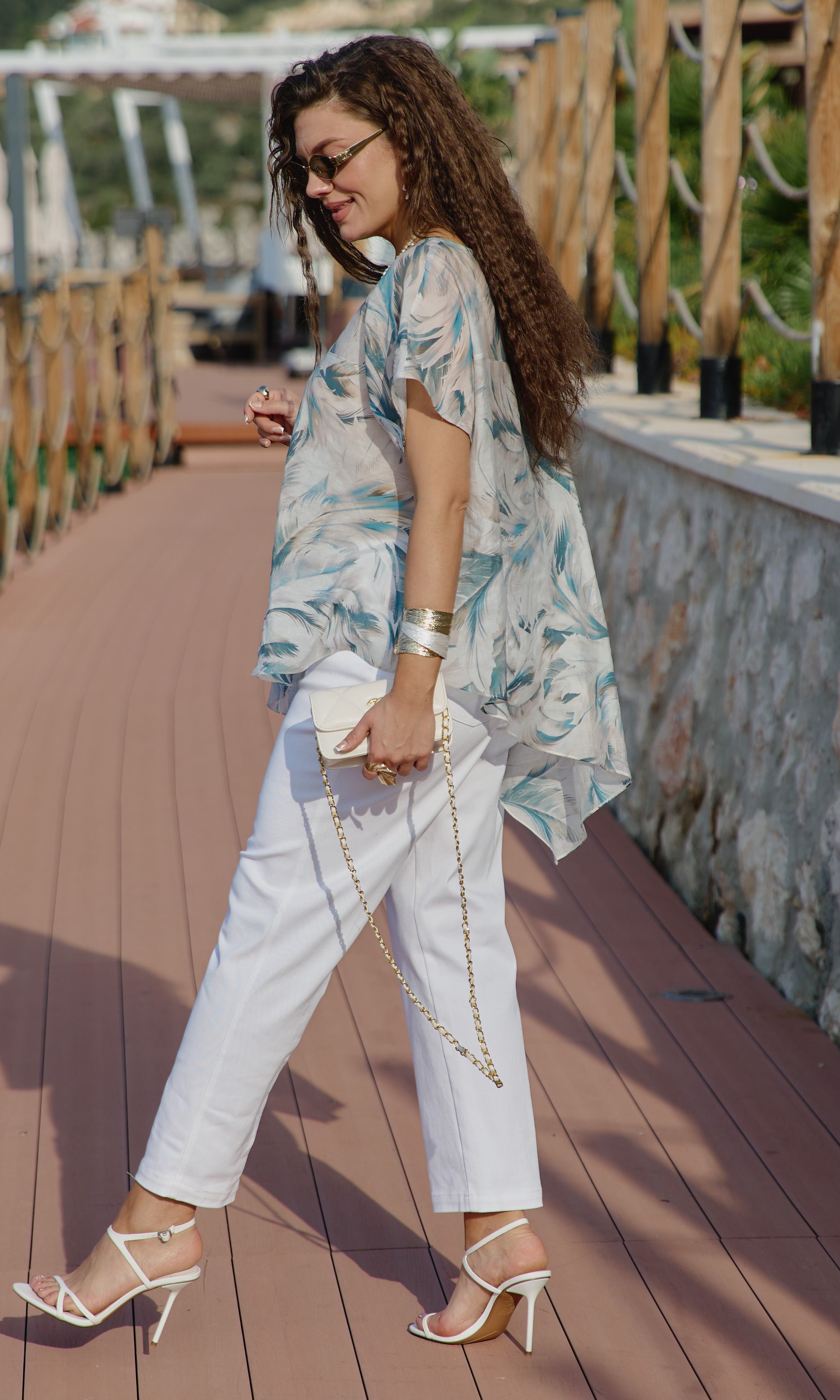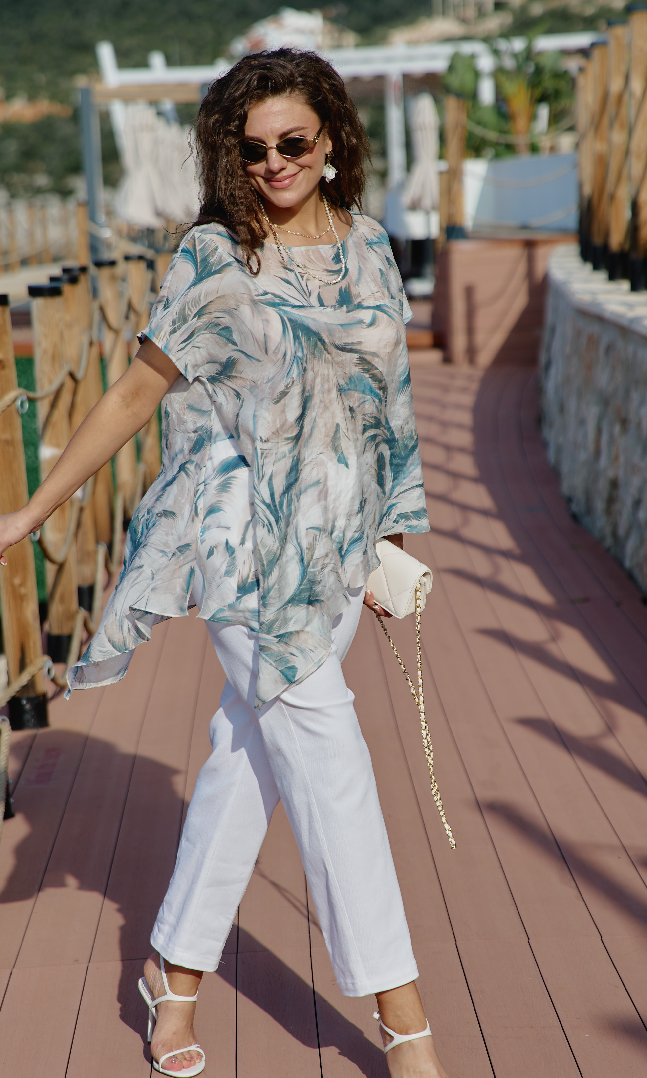 Состав: блуза 76,10% тэнсел, 23,90% полиэстер, брюки 97% хлопок, 3% эластан. Комплект женский, двух-предметный, состоящий из блузы и брюк. В таком наряде женщина чувствует себя не просто модно, но и свободно. Невероятно стильный комплект со стильным дизайном станет ярким акцентом в вашем гардеробе! Легкий, летящий силуэт подчеркнет красоту вашей фигуры и скроет недостатки. Сочетание невесомой блузы со светлыми брюками придает образу особую изюминку. Блуза свободного силуэта с округлой формой горловины, фигурной кокеткой по переду блузы. Рукав в блузке цельнокроеный. Спинка с отрезной кокеткой. Низ в блузке ассиметричный с разрезами в боковых швах. Брюки прямого силуэта, по переду застежка на тесьму-молнию в гульфике и пуговицу в поясе. По переду наклонные карманы. В поясе брюк - вставка резинки в бочках, шлёвки. В задних половинках брюк вставка кокетки с отстрочкой и накладные карманы. Длина блузы 68 см Длина брюк 98 см.