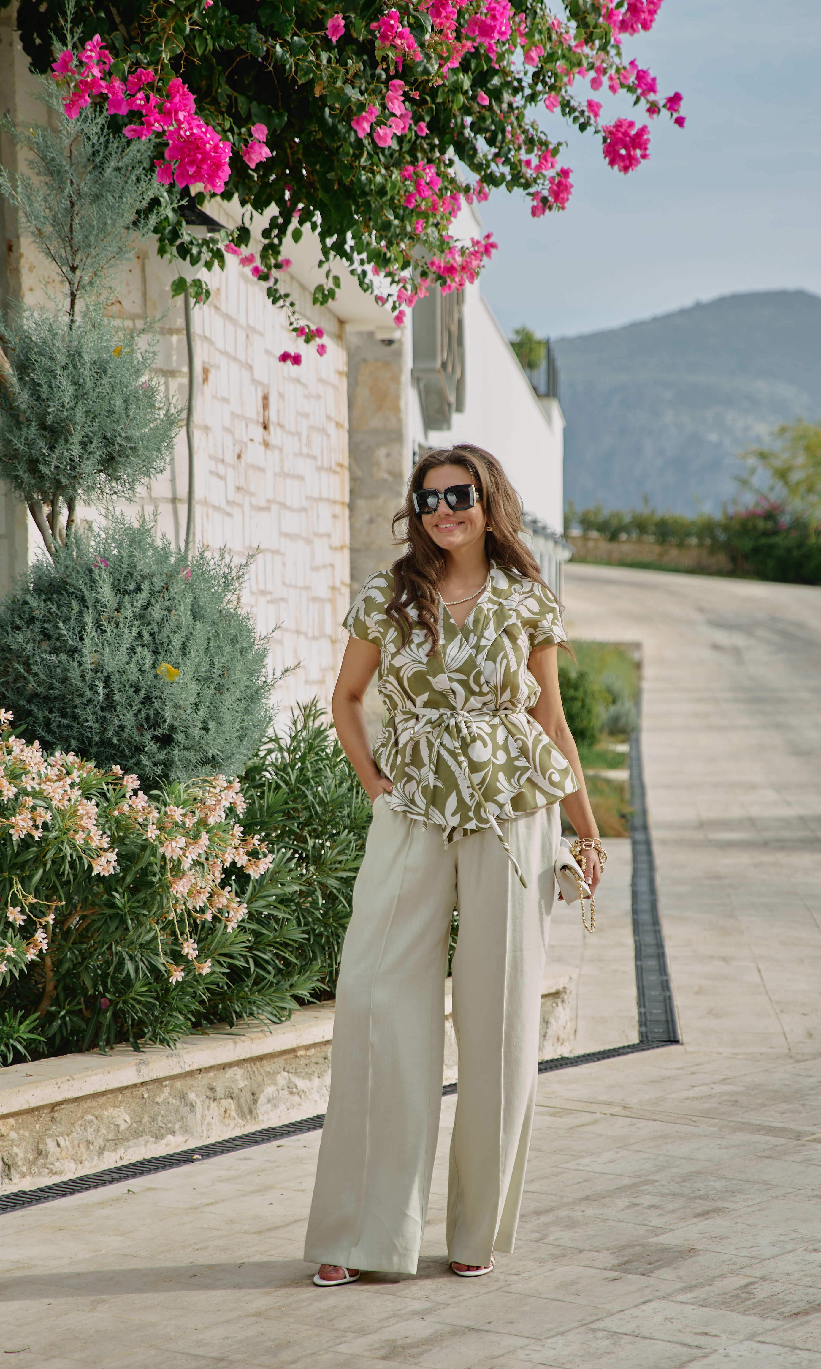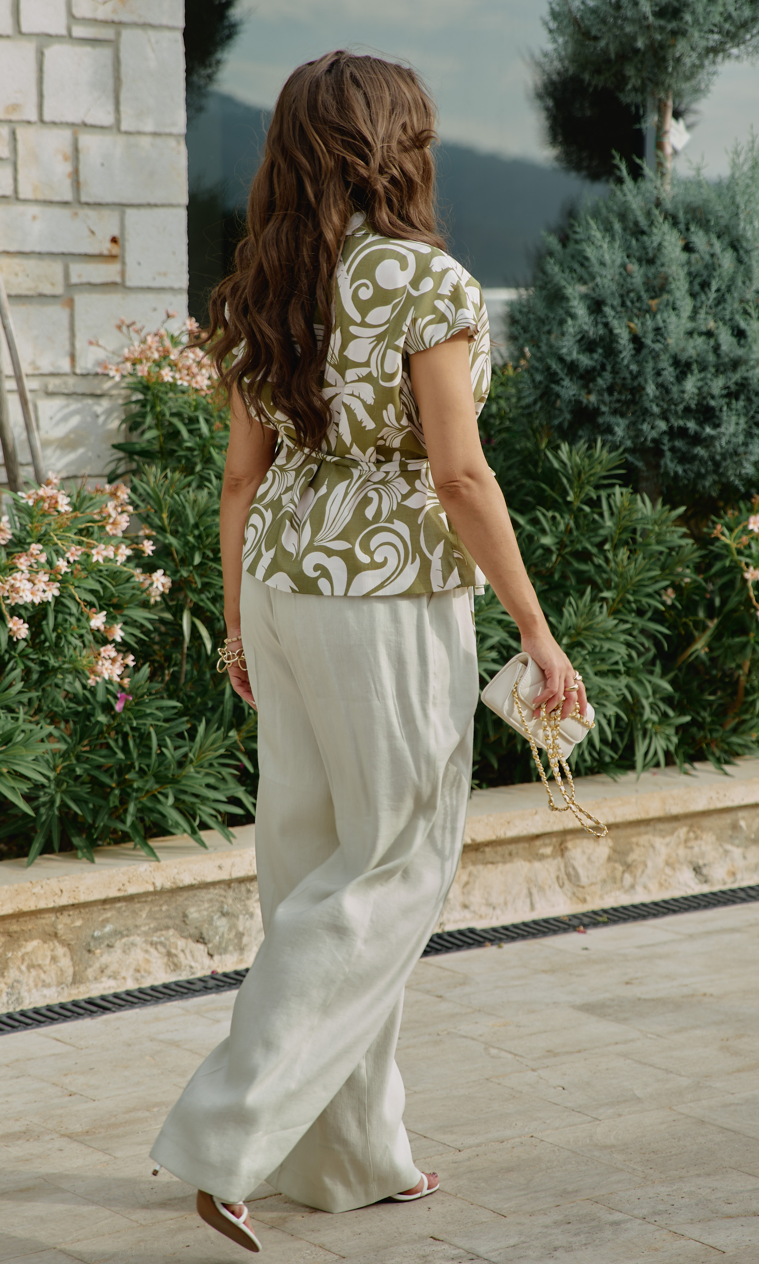 Состав: жакет 76,1% тенсел, 23,9% полиэстер, подкладка 100% вискоза, брюки 55% лен, 45% вискоза. Комплект женский, двух предметный, состоящий из жакета и брюк. — это больше, чем просто одежда. Он подходит для женщины, которая не боится быть замеченной, но делает это с изяществом. Для той, кто понимает, что настоящая смелость — не в кричащих деталях, а в гармонии противоположностей. Жакет свободного силуэта, на «запах» с фигурной линией борта, и акцентным элементом в виде декоративных лацканов переходящих в воротник. Запах — это не просто застежка, он создает динамичную асимметрию — одна сторона накладывается на другую, создавая живую, нестатичную форму. А также игру объемов — в зависимости от того, как завязан жакет, меняется его силуэт. Линия плеча в жакете спущенная, плечи плавно ниспадают, создавая расслабленный силуэт. Спинка без особенностей. В комплекте идёт декоративный пояс из основной ткани. Жакет на подкладке. Брюки прямого силуэта по переду с стрелками, застроченными декоративной строчкой нитками в цвет. Пояс отрезной на эластичной тесьме-резинке. По переду выполнены наклонные карманы классической формы от пояса к боковому шву. По низу отделочная строчка нитками в цвет ткани. Данный комплкет идеально впишется в ваш гардероб. Он идеально сядет на фигуру, модель идеальна для летних прогулок, а так же торжества. Брюки прекрасно сидят на талии, свободны по бедрам и широкие внизу, что визуально вытягивает фигуру и придает вам уверенности в каждом движении. Длина жакета 64 см. Длина брюк 108 см.